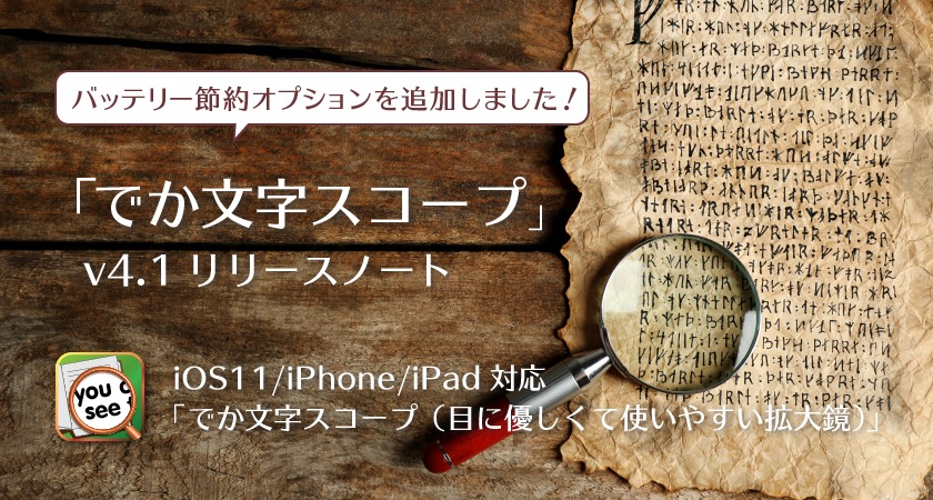 さて、「でか文字スコープ(目に優しくて使いやすい拡大鏡)」の2つのエディション、「でか文字スコープ」(無料版)とその上位版「でか文字スコープ EX」の v5.2 がリリースされました。この記事では、今回のバージョンアップで追加された新機能について詳しくご紹介します。